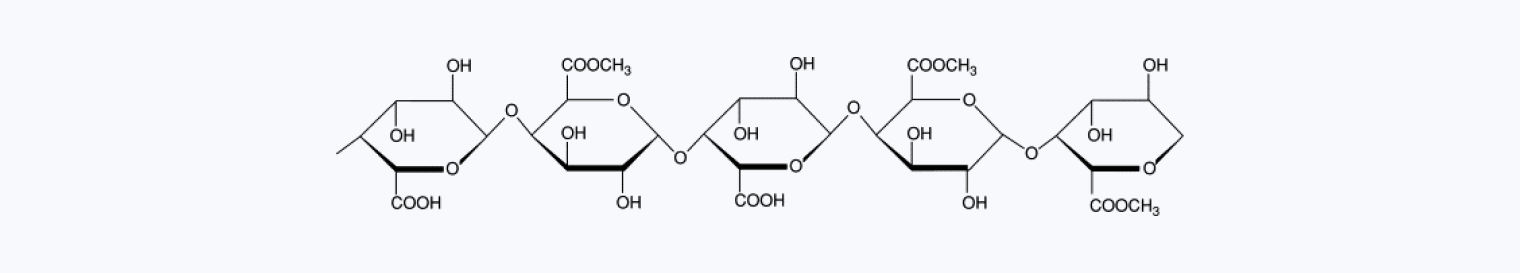 - Galacturonic acid, Glucuronic acid, Mannuronic acid 등의 산성당이 다량 함유된 분자량 10,000~15,000 이상의 다당체